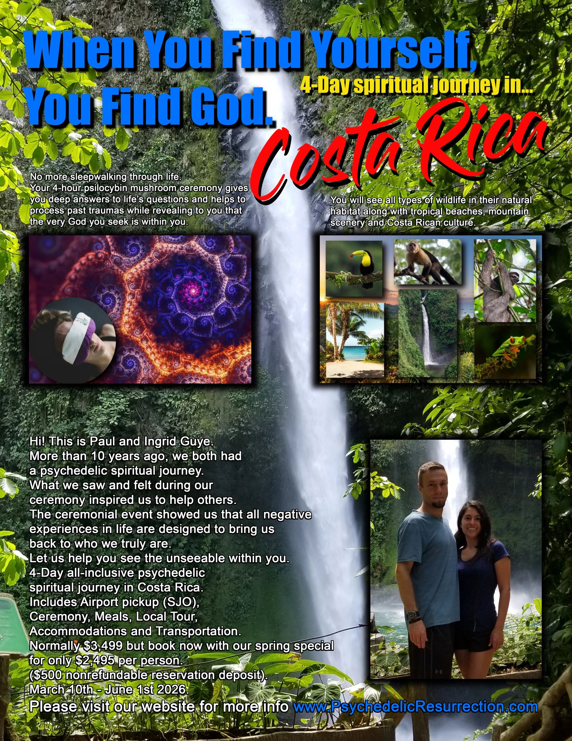 Normally $3,499 but if you book now with a $500 deposit, you'll get our 4 day stay and psychedelic ceremony for only $2,495. Openings available March 10th - June 1st.